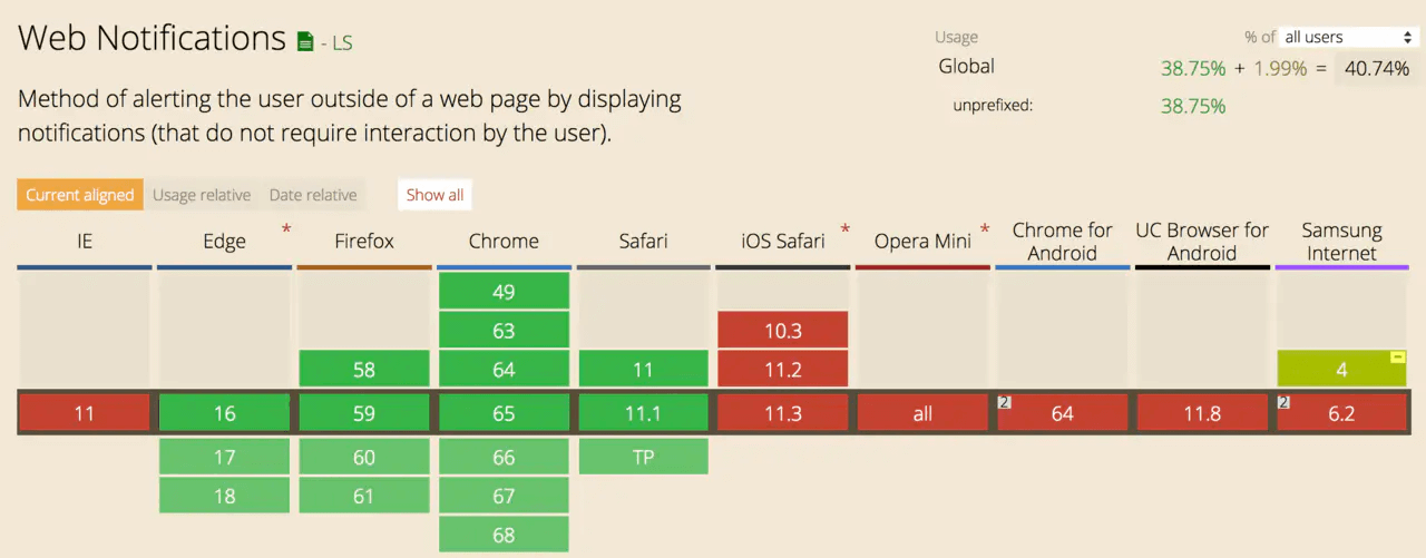 4. MacOS Safari中的Web Notification 看一下Web Notification的兼容性 :