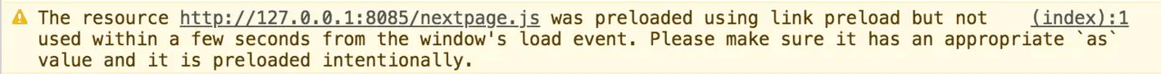 为了节省不必要的带宽消耗,如果Preload的资源在3s内没有被使用,Chrome控制台会出现类似下图的警告。这时你就需要仔细思考,该资源是否有必要Preload了。