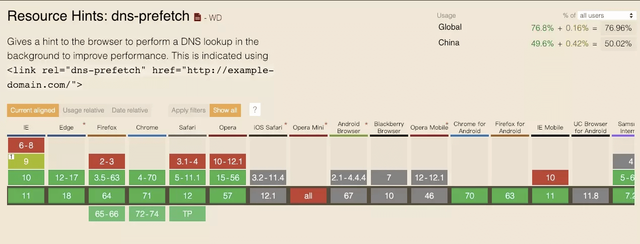 然而,我们不得不面对兼容性的问题。Resource Hints 在低版本 IE 与移动端是重灾区。